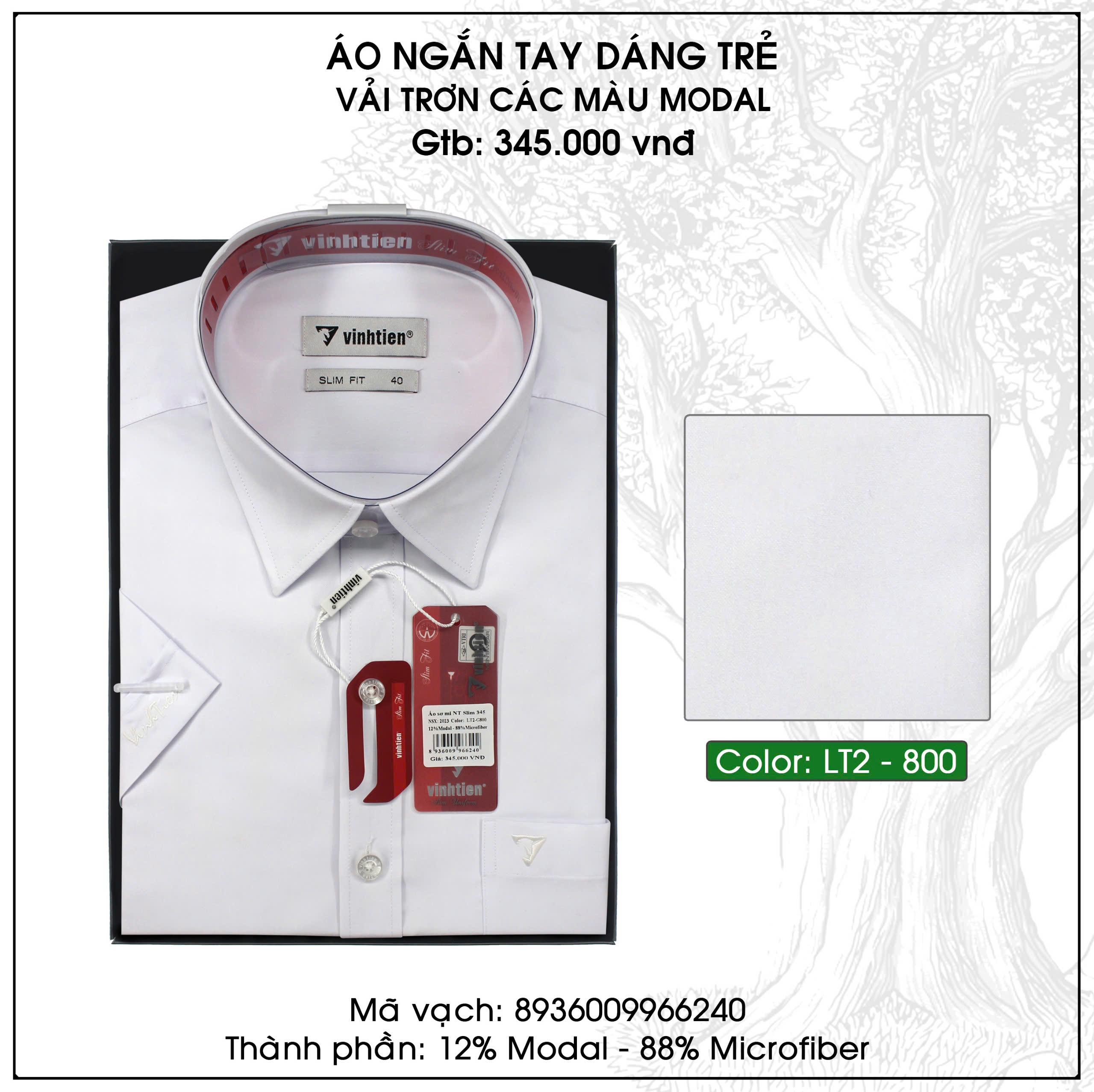 Áo SMNT Slim Fit 345 - Vải trắng Modal